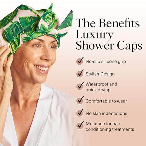 Kitsch Luxury Shower Caps for Women Reusable Waterproof – Large Shower Cap for Women and Men, Non-slip, Quick-dry Hair Cap for Long & Short Hair, Comfortable and Stylish Design – Palm Leaves