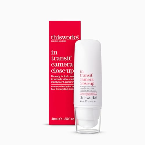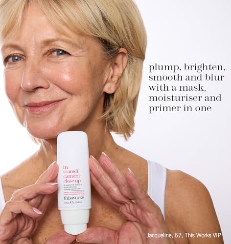 This Works In Transit Camera Close-Up, 40 ml – Hydrating Primer for a Long-Lasting and Flawless Finish to Make Up – 3 in 1 Face Moisturiser, Mask and Primer with Vitamin C and Hyaluronic Acid