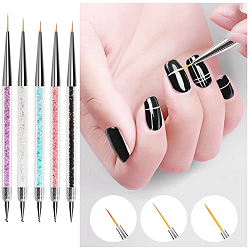 Jsdoin 5 pcs Nail Art Brushes, Nail Dotting Tool, Nail Art Pens, Drill Drawing Nails Brush Pen for Nail Art Tools
